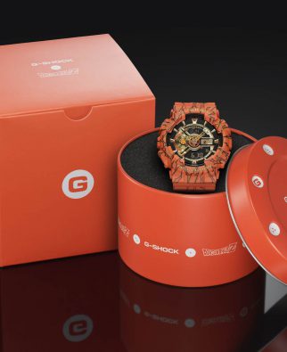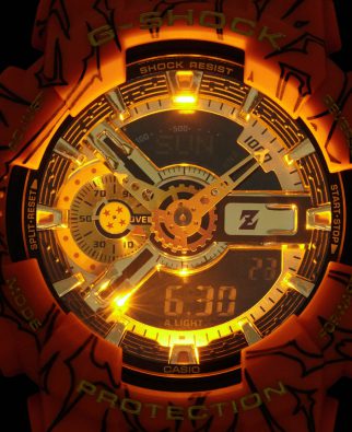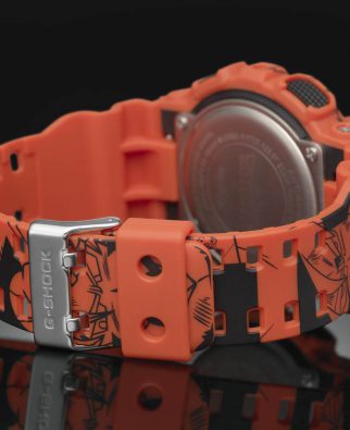 Miłośnicy Dragon Ball Z na pierwszy rzut oka rozpoznają charakterystyczne ilustracje, którymi ozdobione są pasek i koperta zegarka. Barwa specjalnego G SHOCKA – to mocny pomarańcz, kolor stroju gi, w którym występuje Son Goku. Złote akcenty tarczy błyszczą niczym płomienie smoczego ognia. Wskazówka na godzinie 3 prezentuje symbol Z, a na godzinie 9 dotyka czterogwiazdkowej smoczej kuli. To pamiątka po dziadku, największy skarb Son Goku.