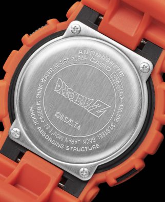 Dragon Ball Z stawia swój podpis umieszczając logo na tyle obudowy zegarka . G SHOCK GA-110JDB dostaje specjalne opakowanie – pomarańczowe barwy smoczego wojownika.