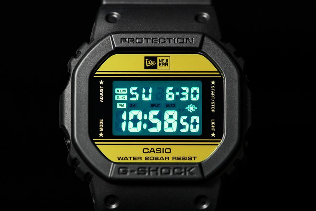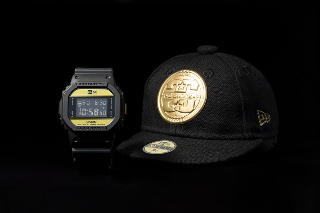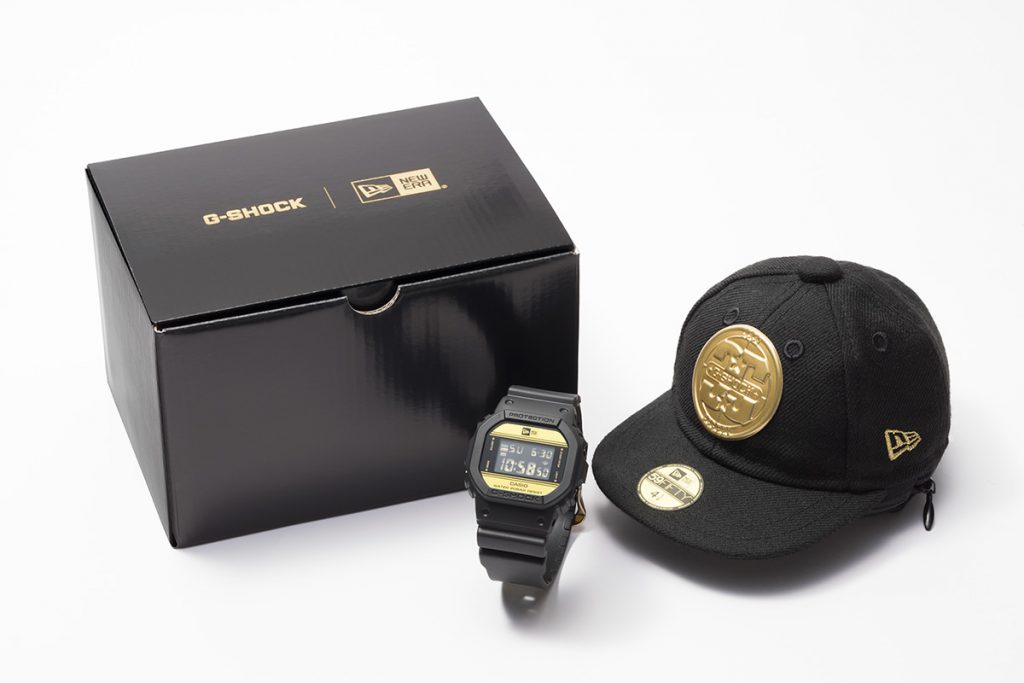 Kolaboracyjny model powstał na bazie kultowego zegarka DW-5600, którego kształt inspirowany jest pierwszym w historii modelem G-SHOCK z 1983 roku. Na tarczy pojawiają się elementy czarno-złote – nawiązują do naklejek, które znajdująsię na sztandarowych modelach czapek marki New Era – słynnych 59FIFTY?. Lustrzane złote elementy zestawione z matowym wykończeniem koperty sprawiają, że model nabiera intrygującego charakteru.