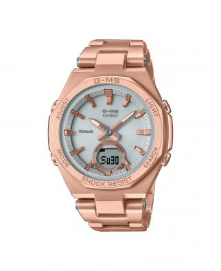 Nowa seria MSG, to połączenie casualowego luksusu z wytrzymałą stalą o wyrafinowanym wyglądzie oraz intuicyjną obsługą wspieraną przez system Bluetooth i aplikację BABY-G Connected. MSG-B100 to g-shock dla kobiety, który wyposażono w wyjątkowo cenione zasilanie solarne Tough Solar, zapewniające długotrwałe użytkowanie tych wyjątkowych modeli G. Są to również modele o zaawansowanym module, którego funkcje mogą stanowić spore zaskoczenie, skupiając się wyłącznie na wyglądzie tych nietuzinkowych zegarków. MSG-B100 to prezent na walentynki, który wyposażono w podwójne podświetlenie Super Illuminator z możliwością wyboru czasu podświetlenia L1 (1,5 sek.) i L3 (3 sek.). Takie rozwiązanie w połączeniu z przepiękną tarczą tej damskiej serii G gwarantuje nie tylko perfekcyjną jakość odczytów czasu wskazówek i danych z wyświetlacza, ale również bardzo atrakcyjną dla oka.