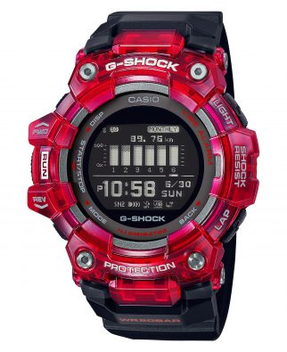 GBD-100SM-4A1ER – półprzeźroczysty czerwony bezel pozwala postrzegać tą wersję jako zdecydowanie bardziej dynamiczną i agresywną. Czarny pasek i negatywowy wyświetlacz stanowią idealne uzupełnienie całego spójnego projektu.