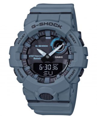 Pierwszym modelem, którego G-Shock wprowadził do swojej oferty w 2018 roku był GBA-800, którego skrót rozszyfrować możemy jako Gshock Bluetooth Analog. Zegarek, który obok wyświetlaczy wyposażony został we wskazówki godzinową i minutową. Dzięki takiemu połączeniu, to własnie GBA-800 jest tym modelem z serii G-Squad, który najczęściej wybierany jest jako uzupełnienie miejskich stylizacji. GBA-800 wyróżnia się także kolorystyką – znajdziemy tutaj modele o stonowanej kolorystyce powodującej, że osoby nie znające tej serii nie mogą nawet przypuszczać, jak rozbudowany moduł kryje koperta o wymiarach 54,1 mm x 48,6 mm x 15,5 mm i wadze 61 g.